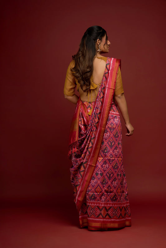 RED AND PURPLE SEMI PATOLA SAREE