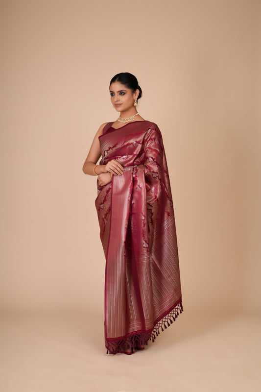 MULBERRY PARROT MOTIF GAJI SILK SAREE