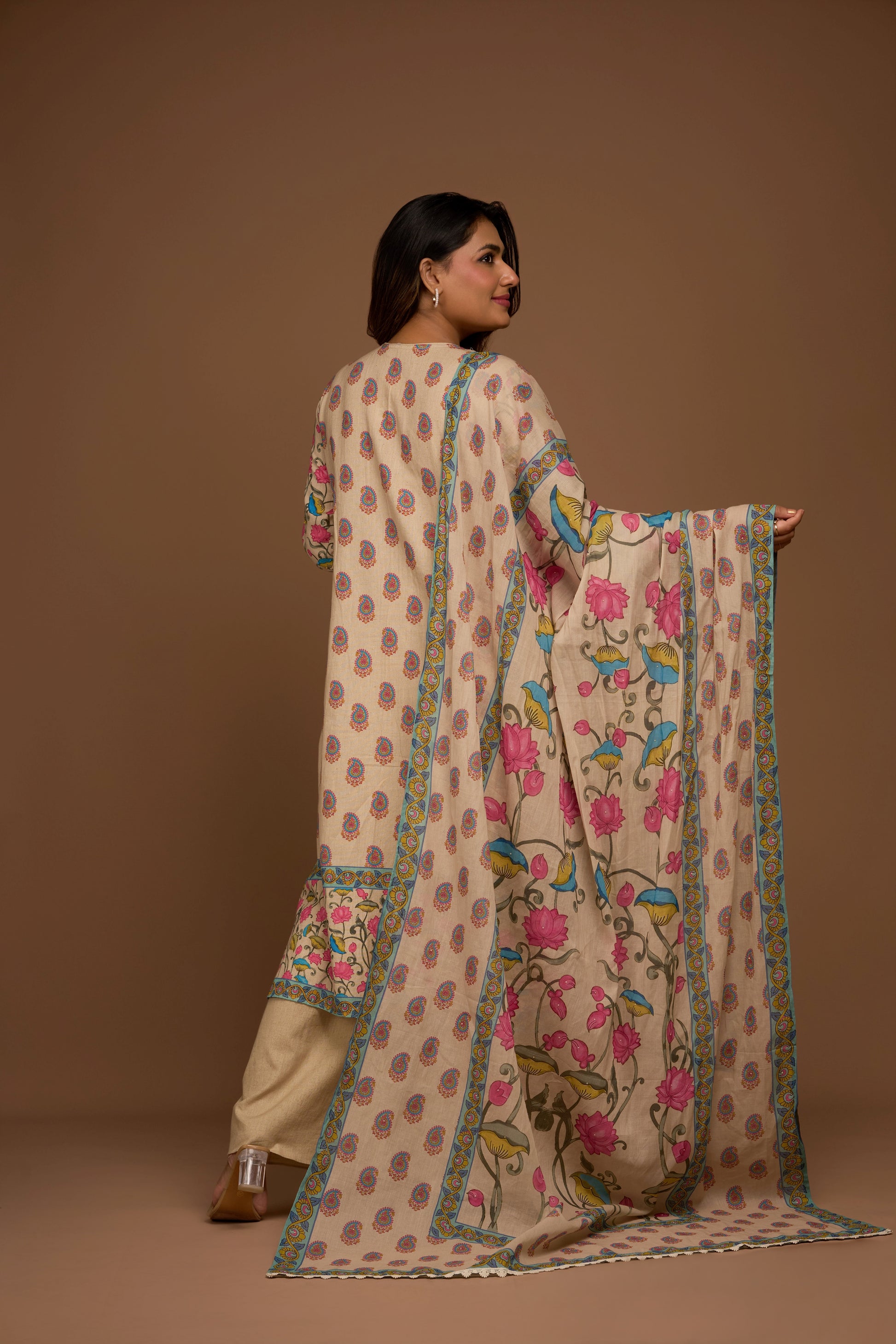 - Fabric: Top - linen cotton, bottom - linen cotton, dupatta - cotton