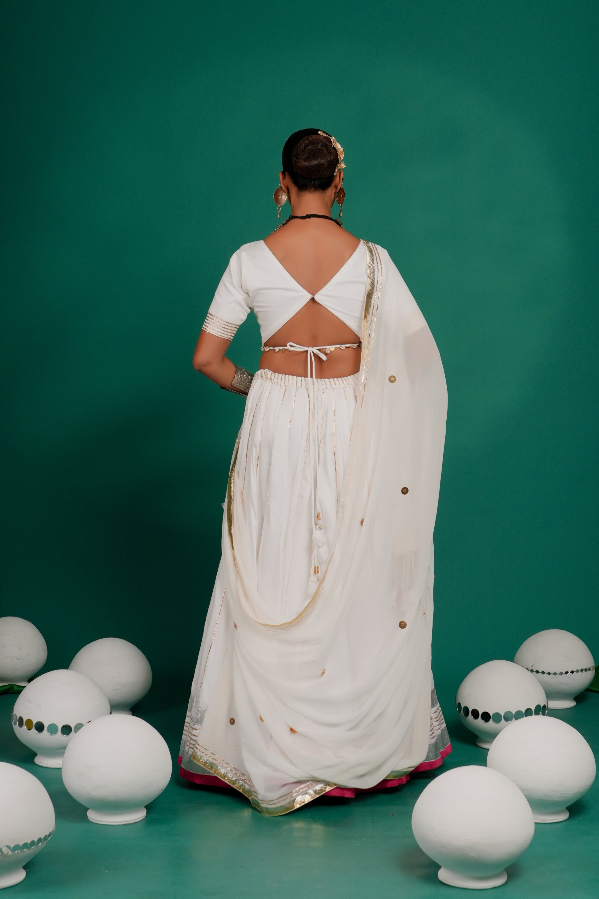 - Work: Gota patti, lampi border, cowrie shells & mirror